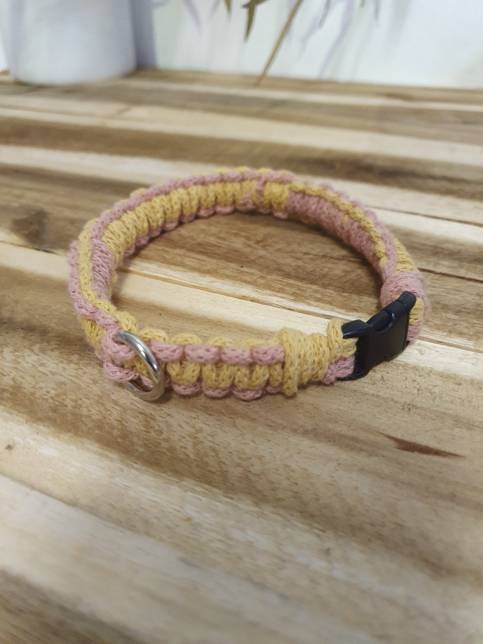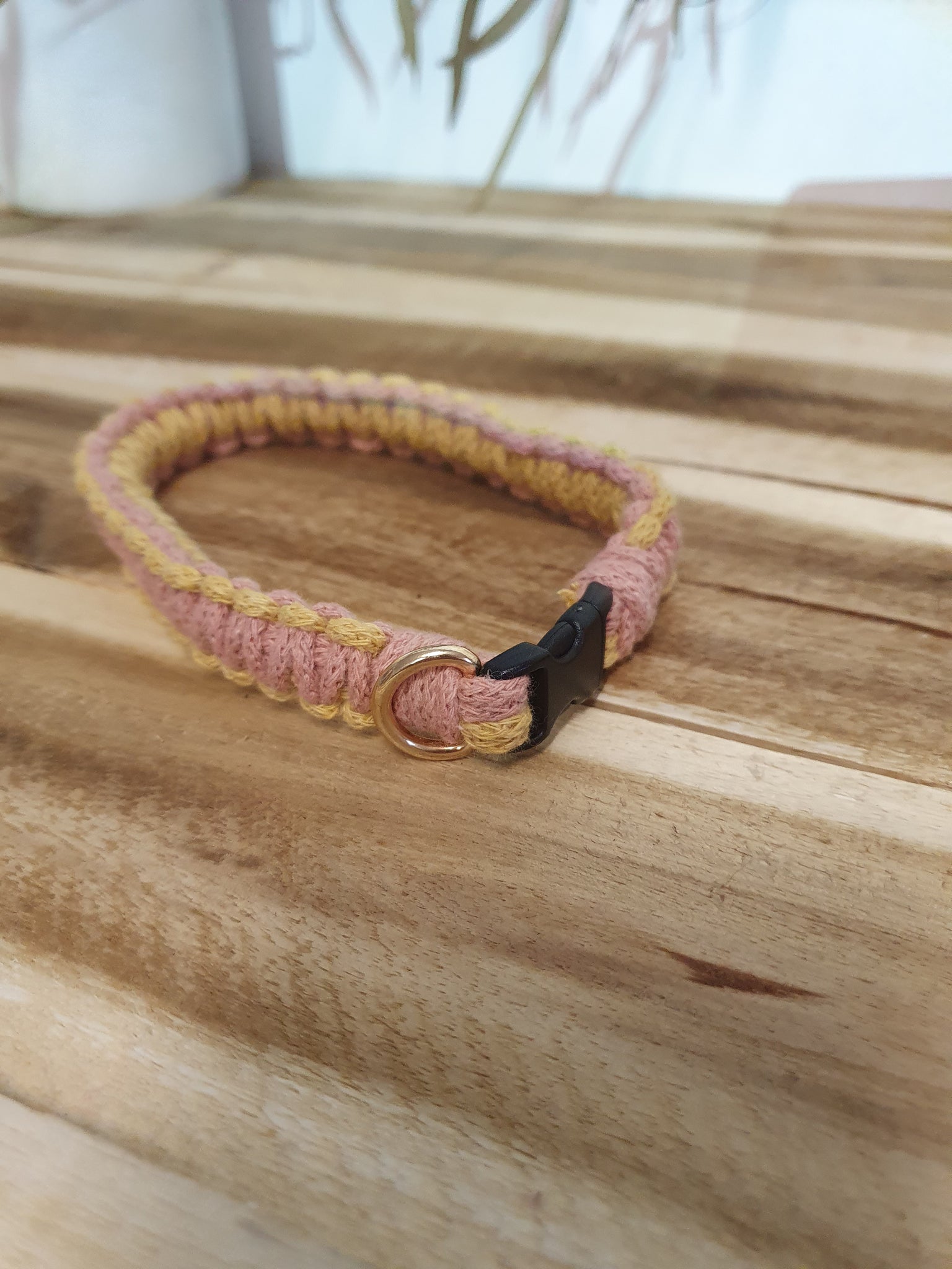 Get your furry friend in style with our handmade macrame pet collars! Handcrafted and unique, these collars are sure to make your pet stand out in the crowd. Let them show off their personality with this quirky accessory. Made with love for your beloved companions. (Woof-tastic!)